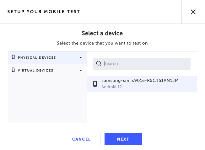 Mobile tests can be recorded and run on both physical and virtual iOS and Android devices. The recording itself can be performed on Windows, Macs or Linux computers using a web browser. When you record a mobile test, Testim converts each action into a test step, which is shown on the Testim Visual Editor screen. However, you can always manually add additional steps to the test by Editing Tests. The tests are added to the Test Library and can be run at any time.